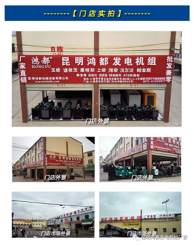鸿都总店设在昆明市小板桥羊甫五金机电市场B栋1-2-3号,为云南最大的发电机组专业门店,且在云南多个机电市场有分店,以及在成都万贯机电城、贵阳西南商贸城设有分店,随时恭候你的大驾光临,线下门店随时为你提供完善周到的服务。